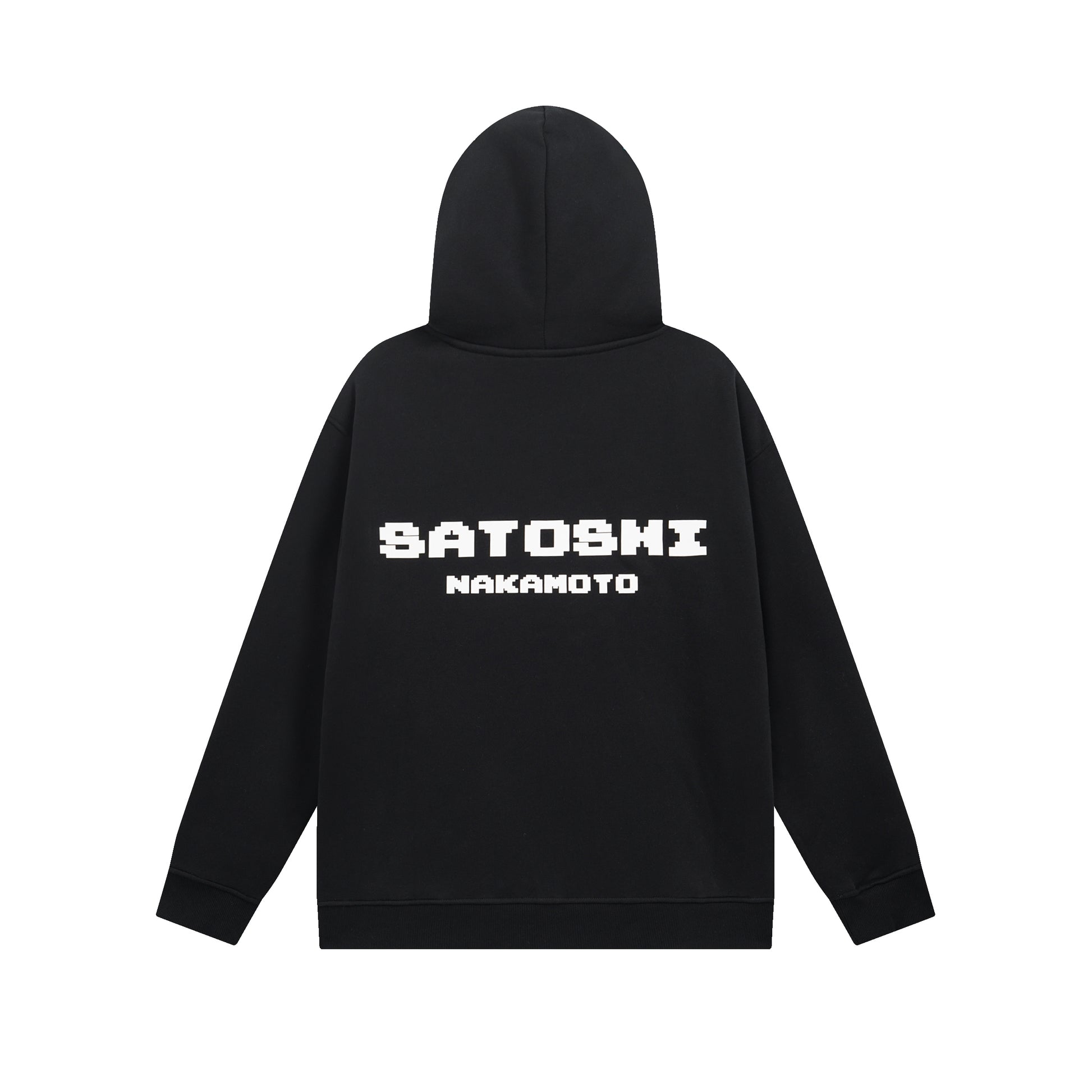 Hood: Embroidered with a Bitcoin "₿"—where faith meets cryptography